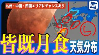 【3月3日 皆既月食】当日夜の天気分布 九州・四国にチャンスありか