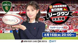【ライブ】天気を味方に全力応援!「リーグワン天気予報」2026年4月16日(木)20:00〜 ゲスト:トヨタヴェルブリッツ NTTジャパンラグビー リーグワン2025-26企画 出演:戸北美月