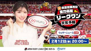 【ライブ】天気を味方に全力応援!「リーグワン天気予報」ゲスト:中国電力レッドレグリオンズ 2026年2月12日(木)20:00〜 NTTジャパンラグビー リーグワン2025-26企画 出演:小林李衣奈